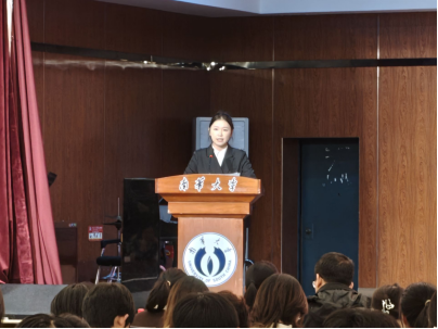 南华大学学生会代表王紫怡向新一届学生干部表示热烈的祝贺,期望全体成员秉承时代精神,提升思想觉悟,确保团学各部门始终走在前列。