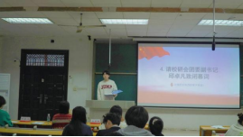 化学化工学院研究生会学术部部长胡丹露同学担任本次活动主持人,化学化工学院学工室主任陈楠老师、化学化工学院辅导员马昭阳老师、校研究生团委副书记邱卓凡同学、化学化工学院研究生团委副书记丁兴毅同学出席活动并担任演讲大赛评委。