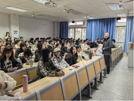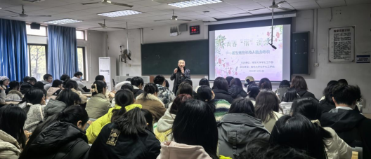 为筑牢新生心理支持网络,提升寝室长的助人服务与寝室管理能力,2025年12月4日,由南华大学学生工作部主办、化学化工学院承办的“青春‘宿’谈会”新生寝室长助人能力培训顺利举行。本次活动创新采用“线下教室讲座 + 线上抖音直播”形式,学校心理健康教育中心主任郑宇老师担任主讲嘉宾,百余名新生寝室长线下参与,更多同学通过抖音直播间同步“云学习”。