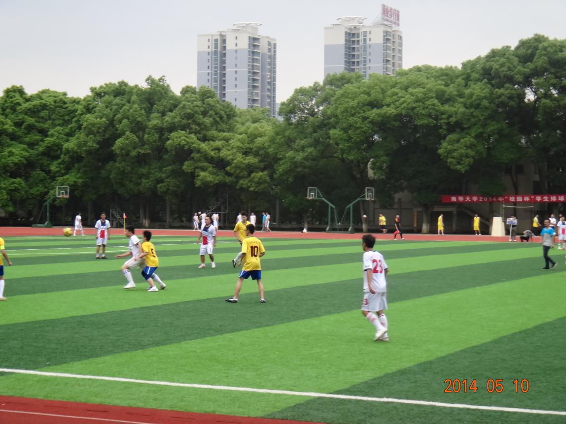 5月10日上午8点30分,南华大学2014年“校园杯”大学生足球赛在南校体育场举行,此次比赛由化学化工学院对阵设计与艺术学院,同时也是B组小组赛的最后一场。比赛开始前化学化工学院党委副书记彭建南、年级辅导员贺峰老师亲临比赛现场鼓励参赛队员,同时贺峰老师也全程观看了本次精彩绝伦的比赛。