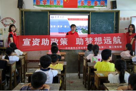 资助政策宣讲志愿者向学校老师、同学们宣传国家资助政策,通过面对面交流宣讲,帮助困难家庭、传递资助力量、助力乡村教育振兴。